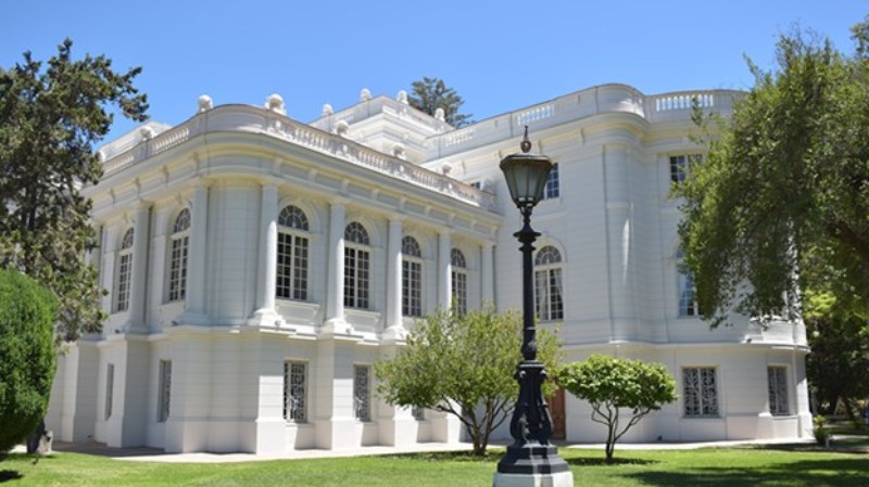 En 1907, despues el tremendo terremoto de 1906 en Valparaiso, el empresario múltiple español radicado en Valparaíso, Fernando Rioja Medel adquirió las cuatro hectáreas de la antigua Quinta San Francisco y encargó la construcción de su nueva residencia viñamarina al arquitecto francés Alfredo Azancot. El diseño arquitectónico del edificio está inspirado en construcciones palaciegas francesas de la segunda mitad del siglo XVIII.
